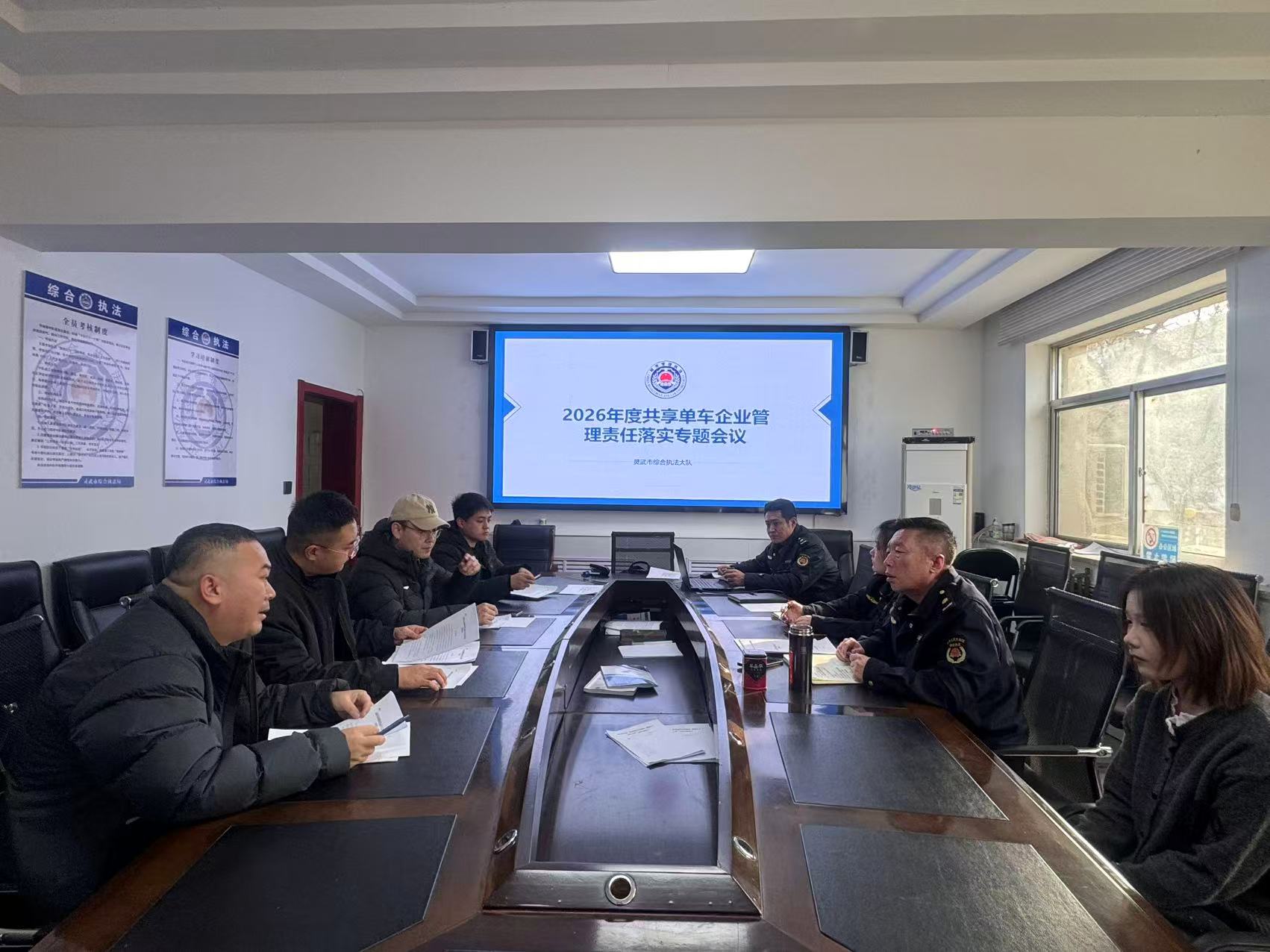 2026年1月5日,灵武市综合执法局牵头组织召开共享单车企业规范管理推进会暨2026年度管理责任落实专题会议。各共享单车运营企业负责人、大队监管执法骨干参会,会议直击行业管理痛点、聚焦责任落实关键,部署系列靶向举措,推动全市共享单车行业从“粗放运营”向“精细治理”转型,切实保障市民出行权益。