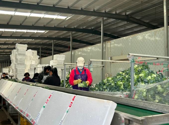 “西兰花从地里面采收上来后,经过浇水、打冷、分拣精修、称重、加冰、包装这几个工序后就上车。我们主要发往上海、武汉、长沙等地的市场。”解佳楠介绍道。