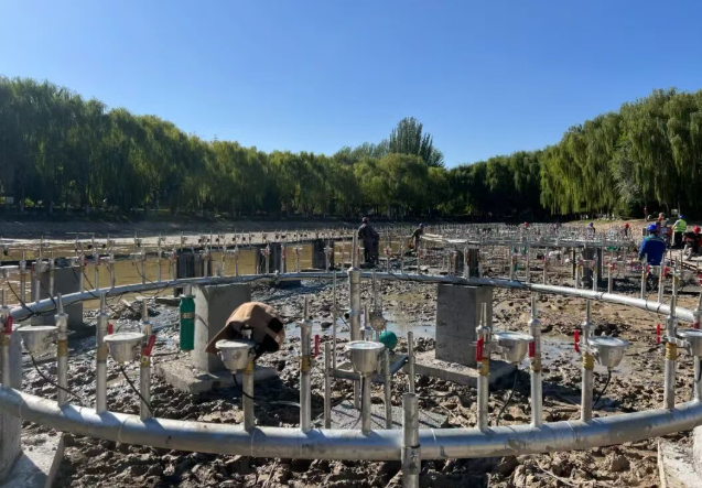 10月13日,记者在施工现场看到,喷泉池内已搭建起整齐的钢结构支架,混凝土浇筑工作已基本完成,工人正对水泵、阀门、喷头等设备进行安装和调试,各项工作正在紧锣密鼓地推进中。据了解,作为枣博园标志性景观之一,该喷泉始建于2008年,历经17年运行后,设施老化问题日益凸显,存在技术功能落后、照明灯光陈旧单一、核心部件腐蚀堵塞破裂、水泵系统严重损坏、控制系统及线路老化等问题,无法正常运转并存在安全隐患,影响了枣博园整体景观品质,降低了游客与市民的游玩体验。