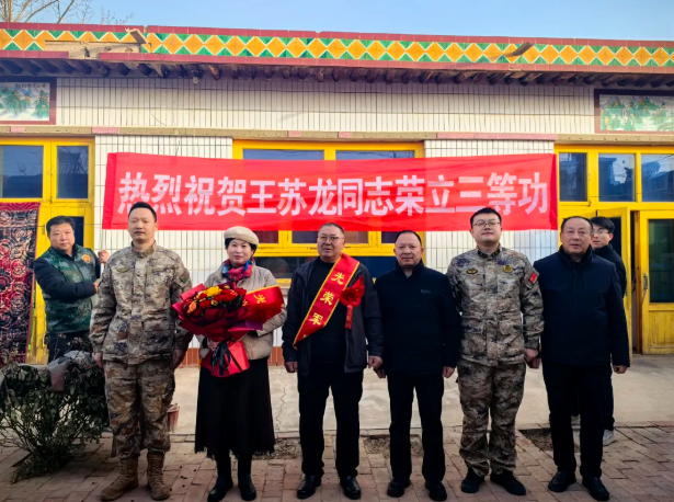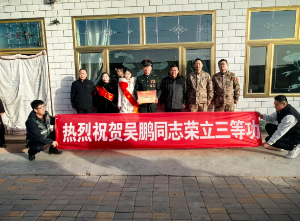 1月14日,市人武部、市退役军人事务局联合崇兴镇、城区街道、东塔镇组成的“送喜报”队伍,分赴辖区各地,为现役军人王苏龙、吴鹏、马泽灵、杜磊、杨继的家属送上三等功立功喜报,将党和政府的关怀与敬意送到军属心坎上。