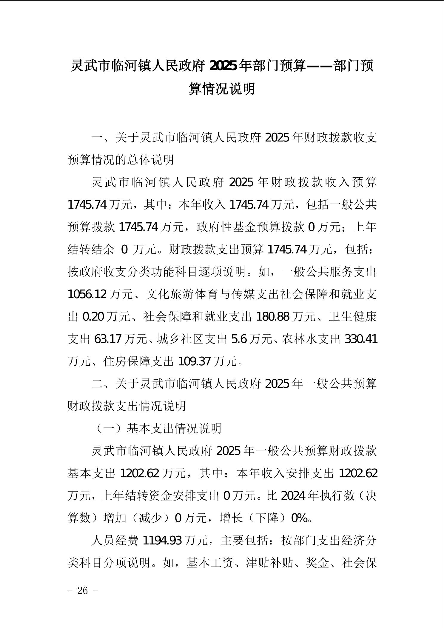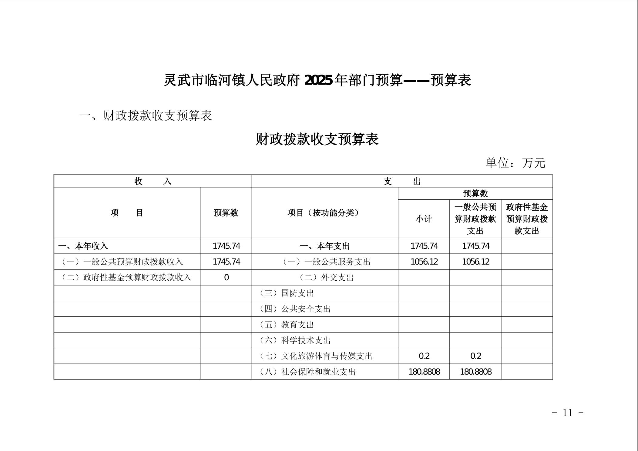 临河镇2025年预算公开