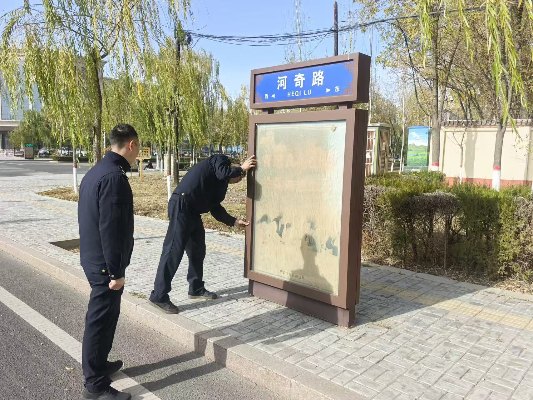 为全面提升城市形象,进一步美化市容环境,确保公共设施的完好与整洁,近日,我局组织执法人员对城区范围内设置的城市道路路名牌灯箱进行全面专项排查整治工作。