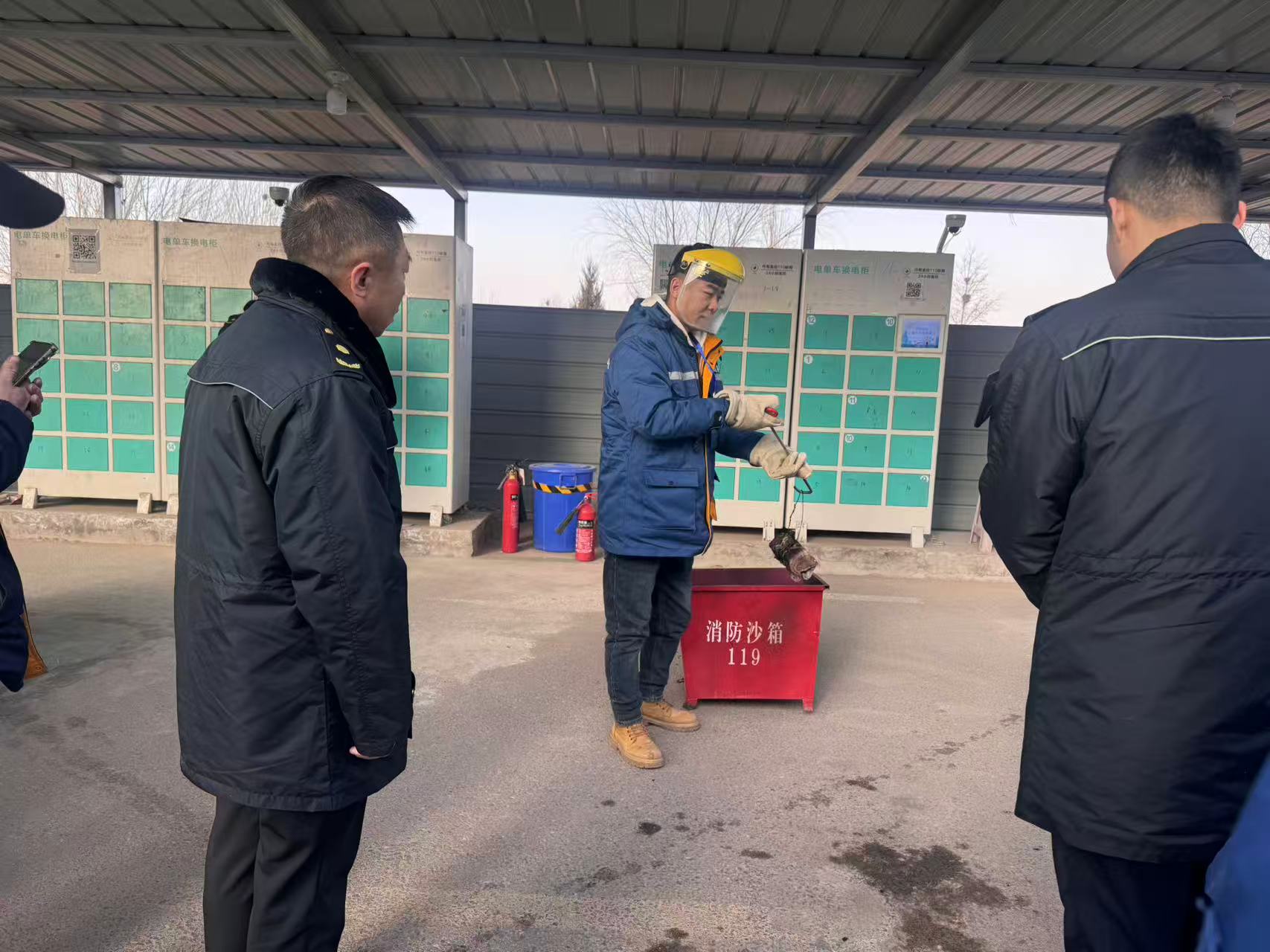 经核查,青桔电单车配备双重消防装置及AI Box智能监控,可实时监测电池过热等隐患并预警,处置后涉险电池需浸泡回收;美团在停放点及电池仓安装烟雾检测设备,实现超标报警、快速处置。执法人员还现场对运维人员开展电池起火处置、灭火器使用、初期火灾扑救等实操培训。