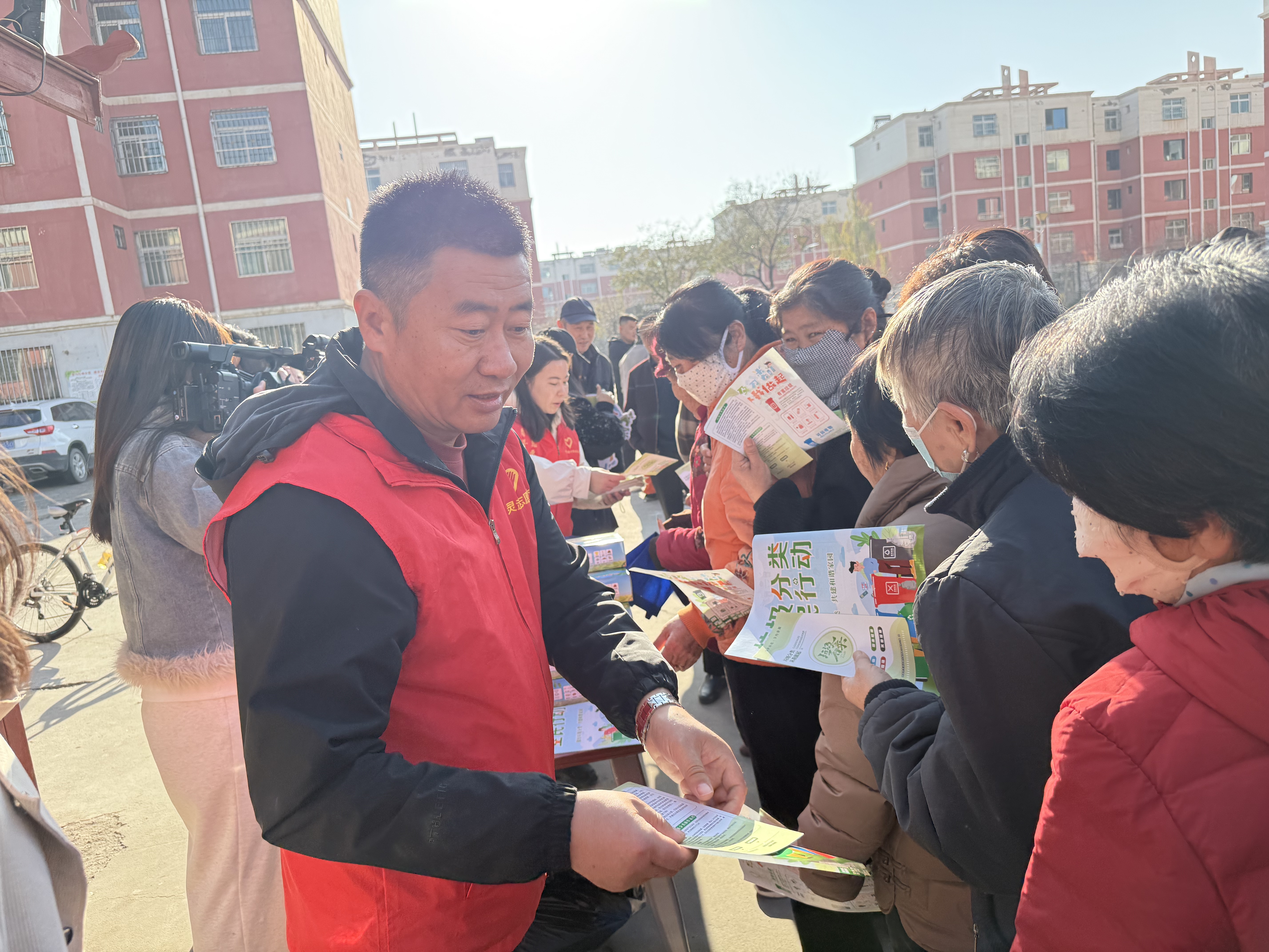 为提高小区居民的参与热情,综合执法局工作人员和社区干部准备了“你问我答”的游戏环节,根据垃圾分类宣传彩页内容设置小提问,为参与游戏的居民发放抽纸、布袋等宣传品,在互问互答中指导大家如何正确地进行垃圾分类,引导居民从日常小事做起,积极参与垃圾分类,践行绿色生活。