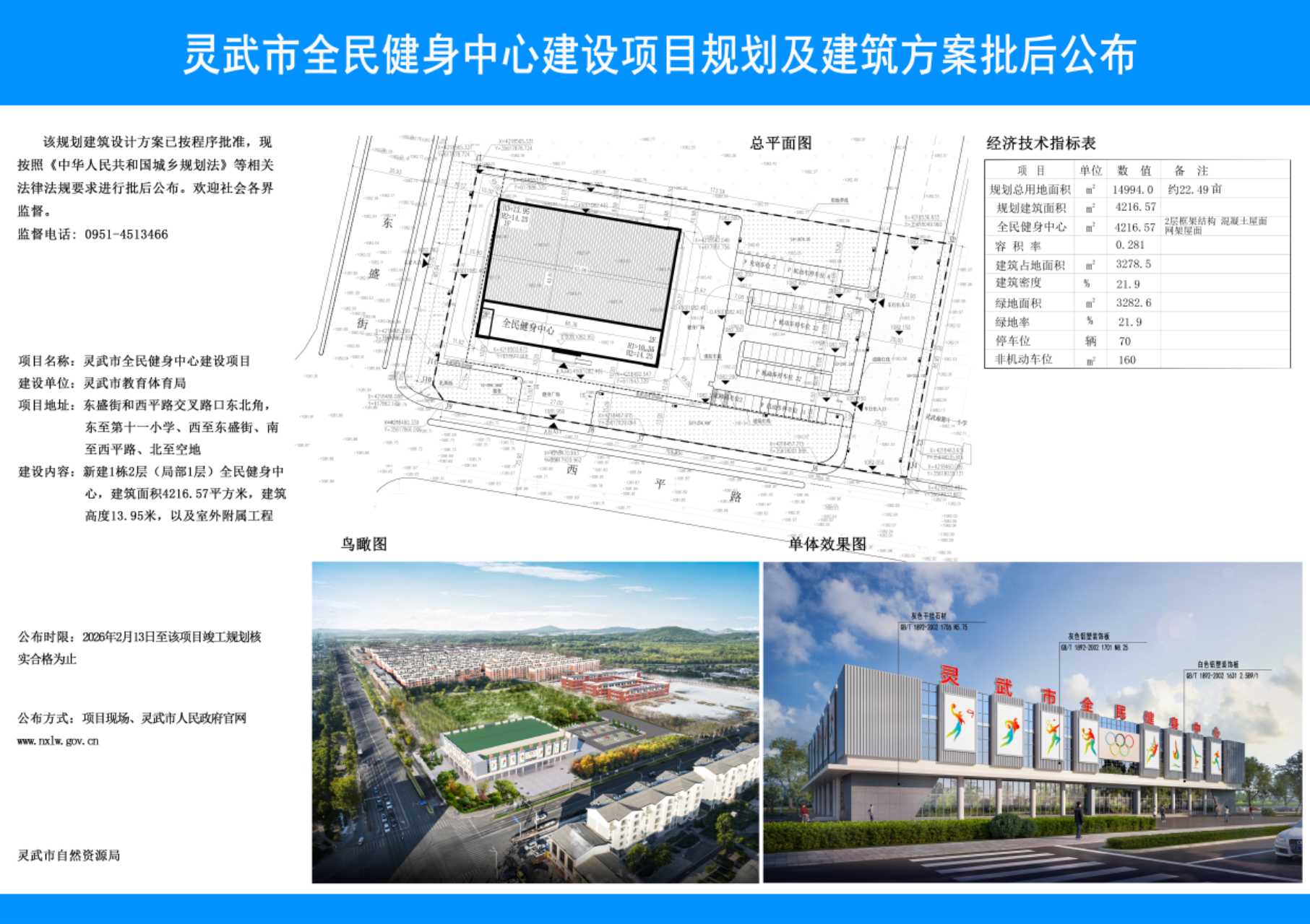 灵武市全民健身中心建设项目规划及建筑方案批后公布