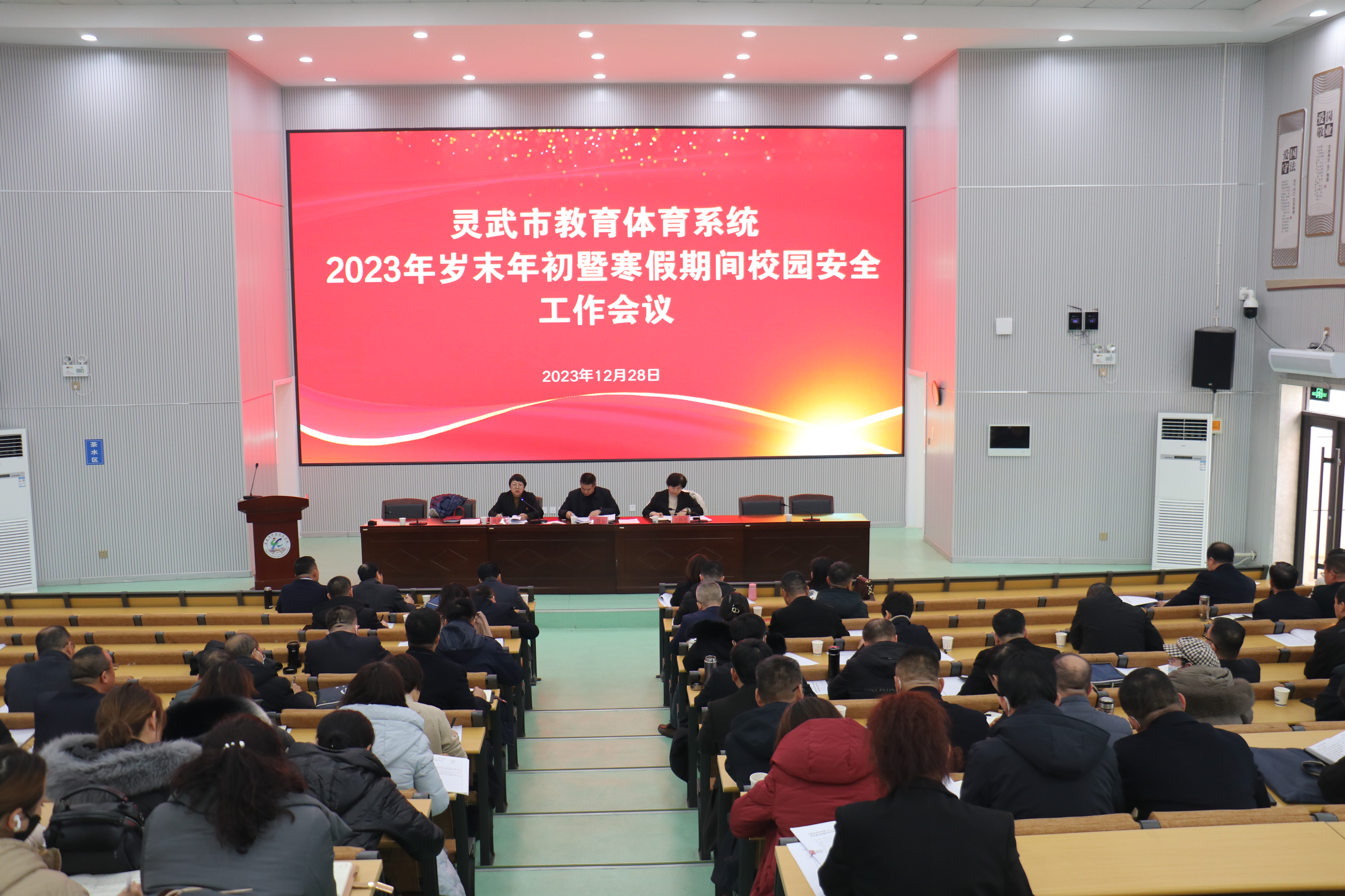 12月28日,灵武市教育体育系统2023年岁末年初暨寒假期间校园安全工作会议在灵武市职业技术学校召开。市教育体育局领导班子成员,局机关全体干部职工及局属事业单位主任,全市中小学(幼儿园)书记、专职副书记、校(园)长参加会议。