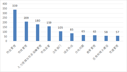 1.物业管理主要涉及街道、社区及村委会管理、物业服务不到位、物业设施使用维护、物业服务收费、充电桩安装、小区内停车等问题。
