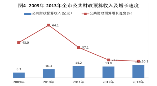 全年完成地方财政收入25.2亿元,比上年增长22.1%。公共财政预算收入15.4亿元,增长11.6%,其中税收收入13.2亿元,增长14.3%,税收占公共财政预算收入的比重为85.7%。全年完成地方财政支出50.6亿元,增长23.9%。公共财政预算支出39.3亿元,增长13.3%。其中,教育支出增长4.0%、医疗卫生支出下降18.0%、住房保障支出增长47.4%、社会保障和就业支出303万元。