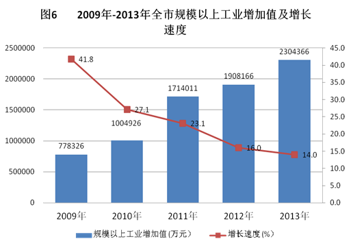 初步核算,全年全市实现生产总值286.8亿元,按可比价格计算,比上年增长11.3%。分产业看,第一产业完成增加值9.7亿元,增长4.5%;第二产业完成增加值247.1亿元,增长12.2%;第三产业完成增加值30.0亿元,增长6.5%。按常住人口计算,人均地区生产总值92658元。三次产业结构比为3.4:86.1:10.5,对经济增长的贡献率分别为1.4%、91.9%、6.7%。