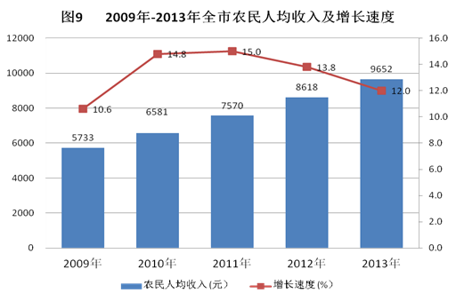 全年农民人均纯收入9652元,比上年增加1034元,增长12.0%。农民人均生活消费支出8544元,增长30.2%。农村居民人均住房使用面积27平方米,下降21.2%。