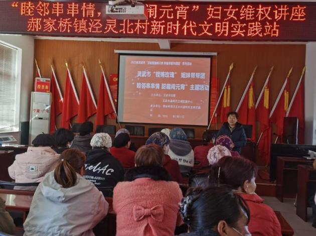 热热闹闹过春节,红红火火闹元宵。为营造保障妇女群众合法权益的良好氛围,提高妇女群众的法治素养,临河司法所联合泾灵北村以“睦邻串串情 甜趣闹元宵”主题活动开展妇女维权讲座。活动期间市妇联邀请老师教村民制作艾草枕头、与村民一起猜灯谜,吴昭同志为村民宣讲有关妇女维权的法律知识。以此次活动为契机与村民一起以特殊的方式共度元宵佳节,为喜庆祥和的元宵佳节增添了浓厚的法治氛围。