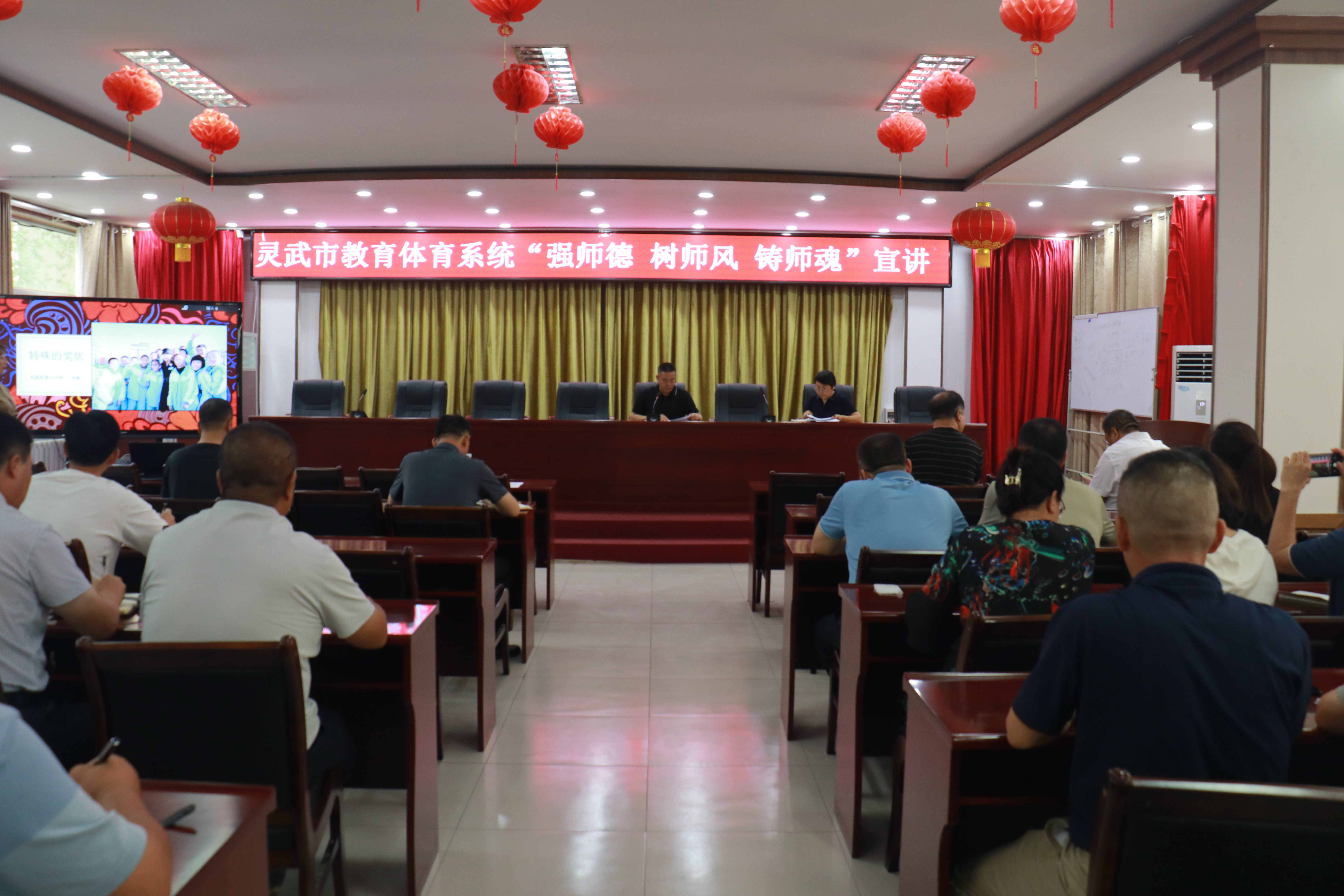 7月11日下午,灵武市教育体育系统开展“强师德 树师风”师德师风巡回宣讲活动。市教育体育党工委书记、市教体局局长石赞太主持会议,局机关全体干部职工及全市中小学(幼儿园)书记、校(园)长参加会议。