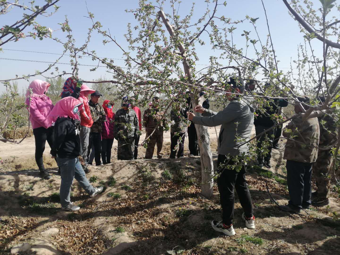 结合最近霜冻情况及苹果长势,果树专家制定了专门的技术方案,并亲自示范,从花期苹果的疏花疏蕾、打石硫合剂、腐烂病防治、防冻等方面进行了细致讲解,及时解决了苹果树春季生产管理问题。