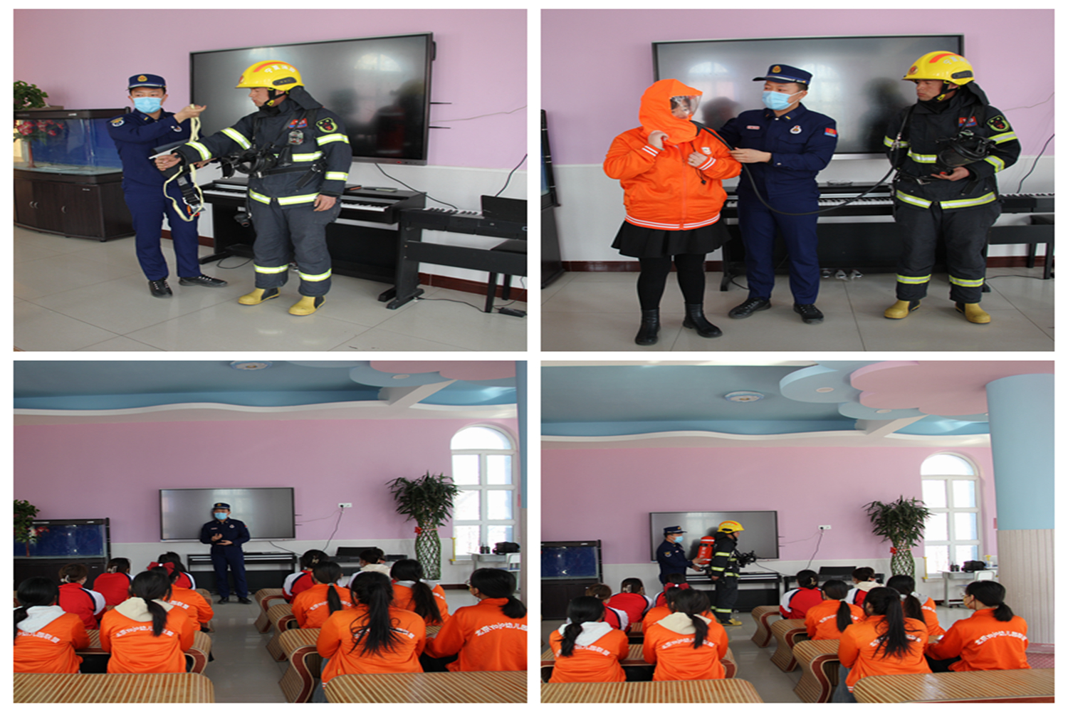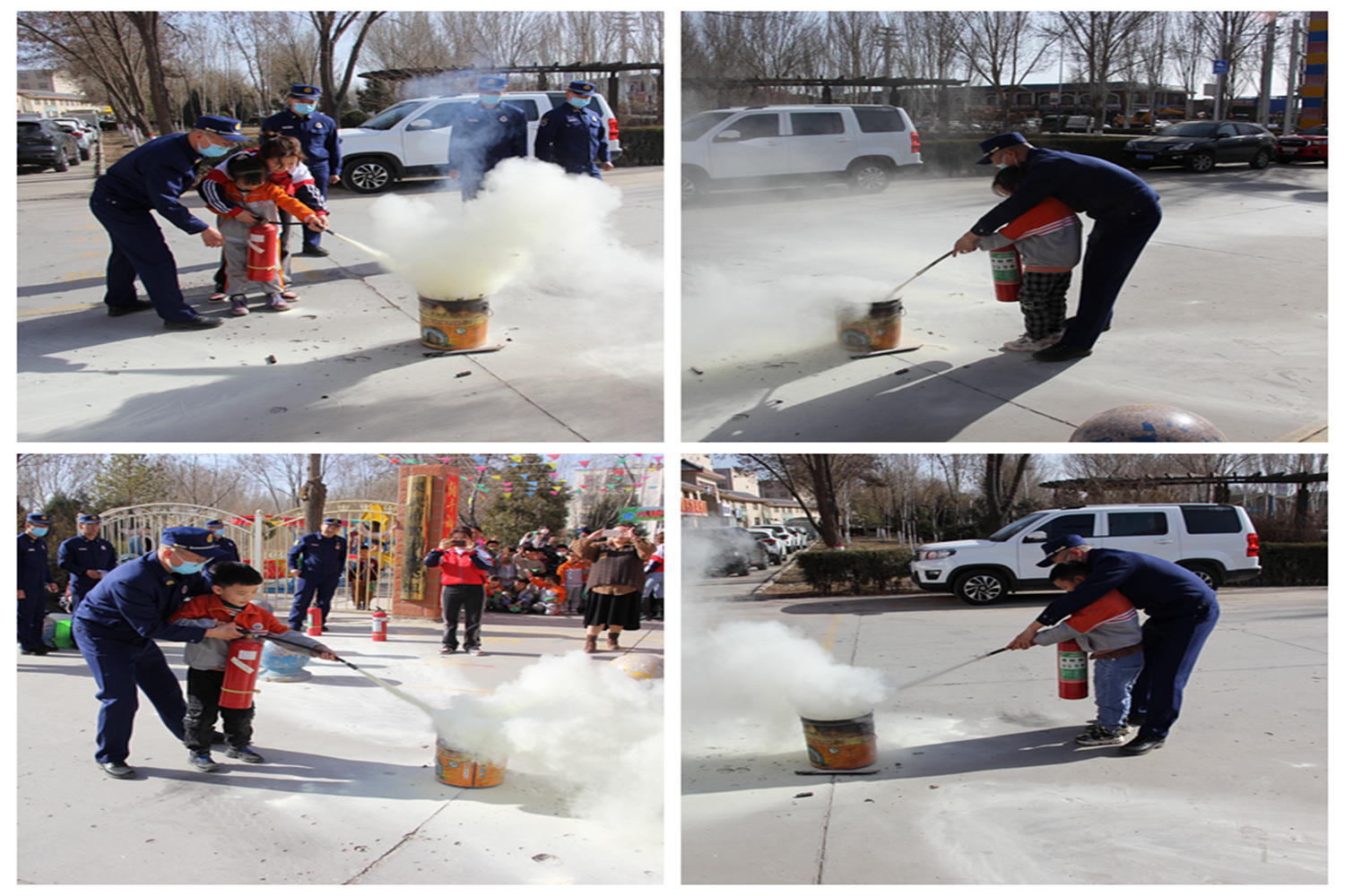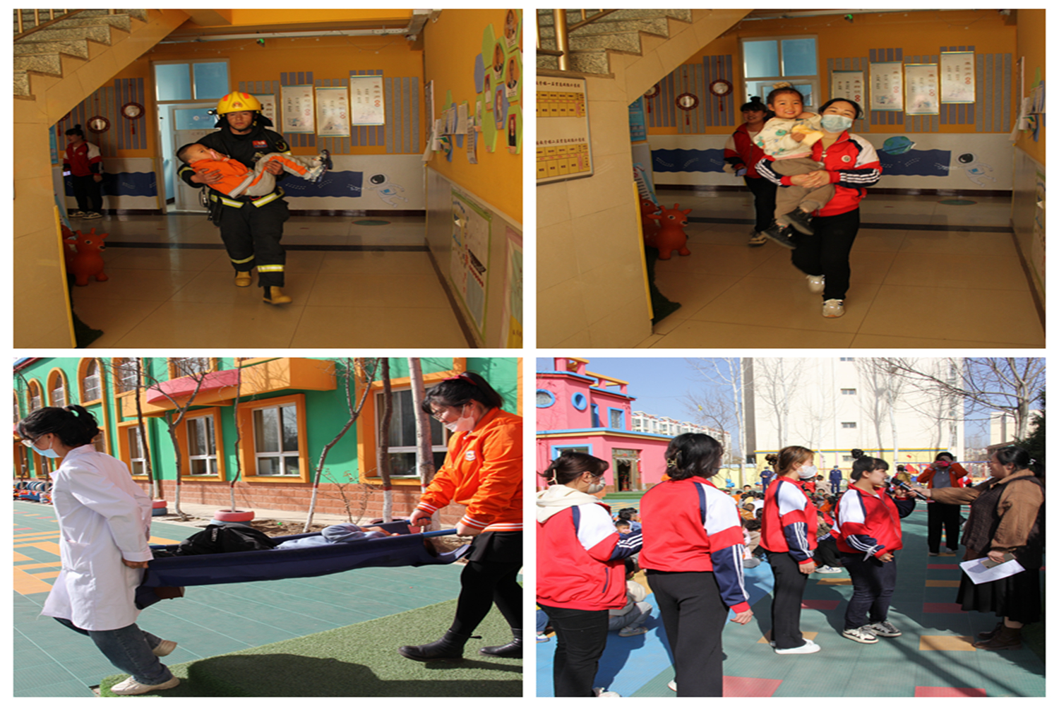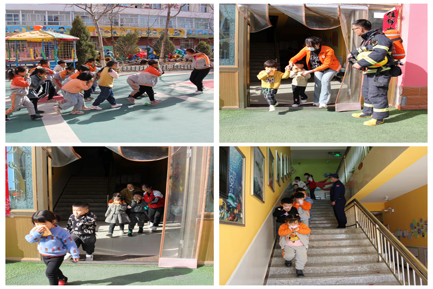 消防宣传员用生动而又浅显易懂的语言向老师们讲解了初期火灾扑救、正确拨打火警电话119、发生火灾后正确逃生自救等常识,现场演示了消防器材的使用方法及消防战斗服的穿戴及使用方法,使全体师生掌握了自救、逃生以及自我保护的具体方法。15:30分,一阵急促的警报声响起,各岗教师迅速到达指定岗位,做好疏散准备,小朋友们纷纷将手里的小毛巾弄湿,捂住自己的鼻子,弯腰低头,不到3分钟的时间,在老师和消防宣传员的带领下快速、有序地、按照预定的紧急疏散路线撤离到安全地点。集合后,各班教师及时清点人数,并向总指挥熊园长汇报。消防救援人员将被困学生成功营救,逃生演练取得圆满结束。演练结束后,大队宣传员就如何正确使用灭火器进行了详细讲解后,小朋友和老师们在大队宣传员的指导帮助下,亲自体验了灭火器的使用,小朋友和老师们积极参与,现场热闹非凡。
