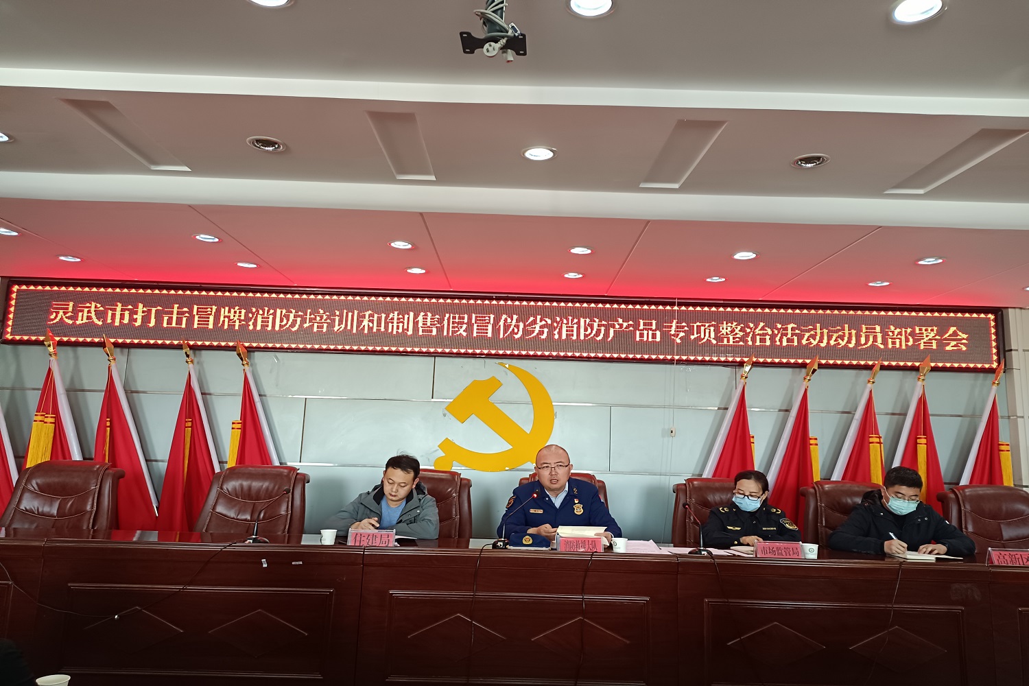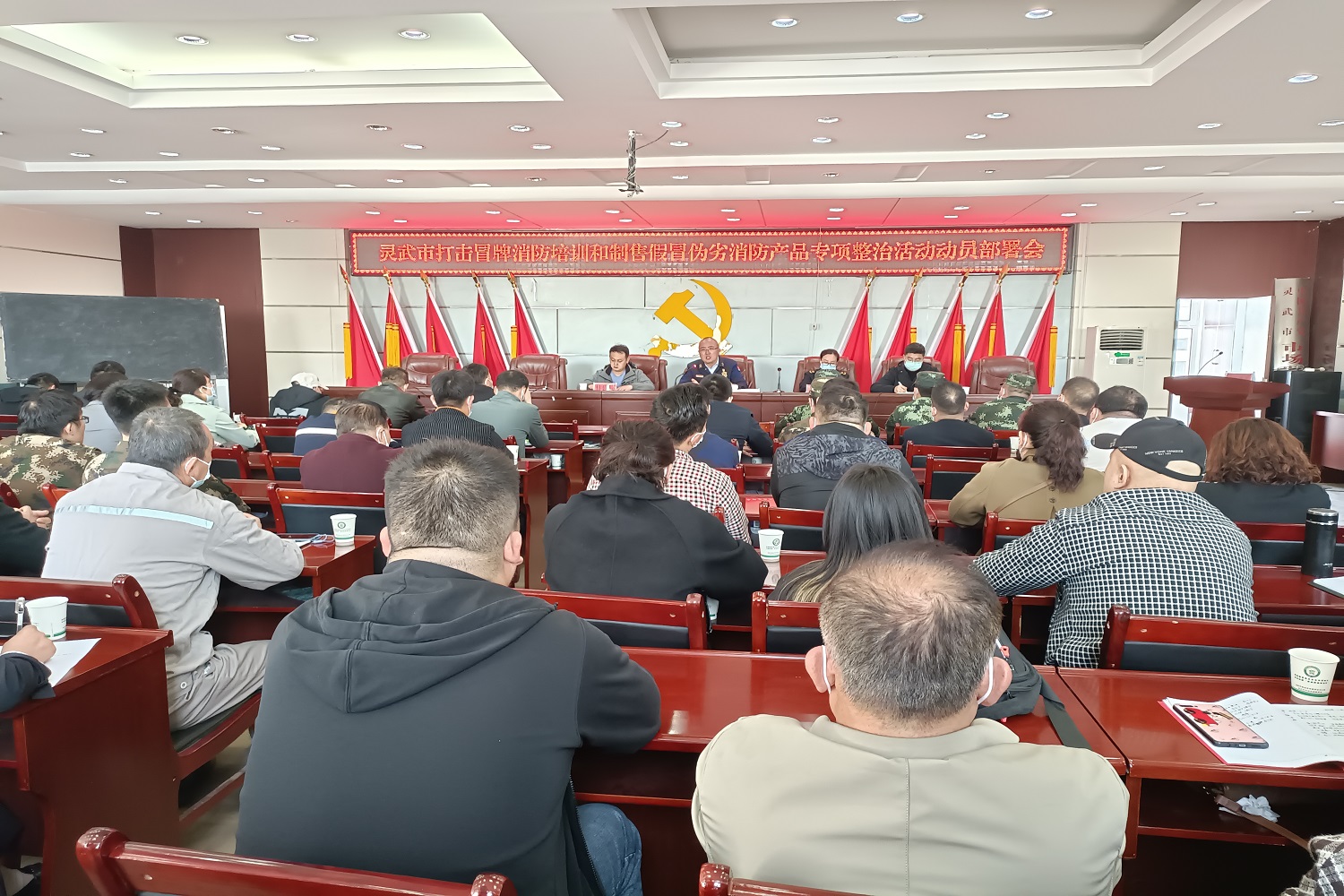 为坚决打击冒牌消防培训和制售假冒伪劣消防产品违法行为,切实规范管理,维护良好秩序,加大消防宣传力度,努力提升群众消防安全的获得感满意度。近日,灵武大队联合市场监督管理局、住建局、高新区管委会召开打击冒牌消防培训和制售假冒伪劣消防产品专项整治活动动员部署会,灵武市各消防安全重点单位负责人参加。