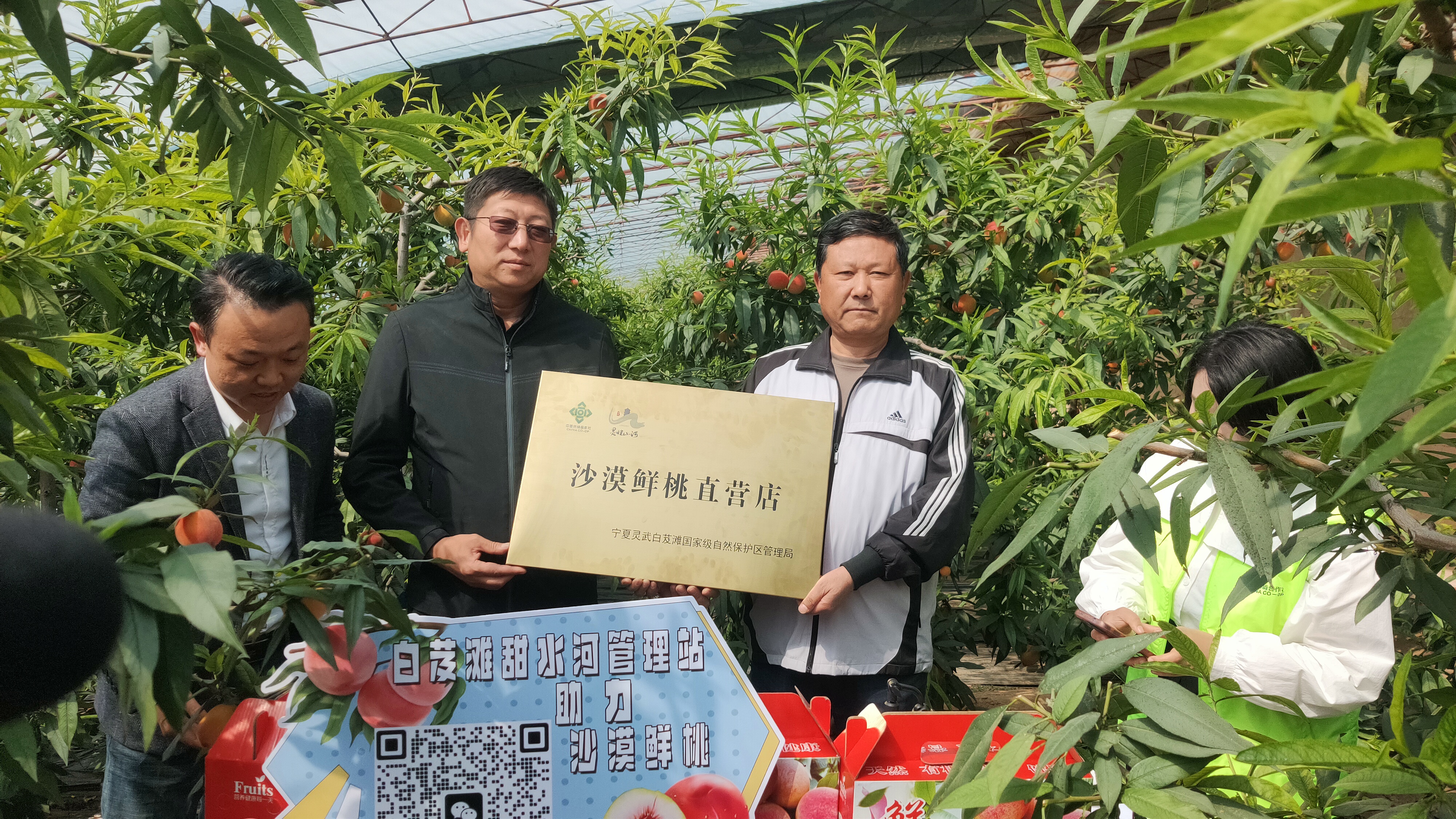 最美四月天,鲜桃等你摘。4月15日,白芨滩管理局联合灵武市商务和投资促进局、市妇女联合会、市供销社、灵武电商公共服务中心在白芨滩管理局甜水河管理站组织了一场“寻灵州美味 品沙漠鲜桃——2023数商兴农、公益助农、灵武电商助力沙漠鲜桃专场直播”。