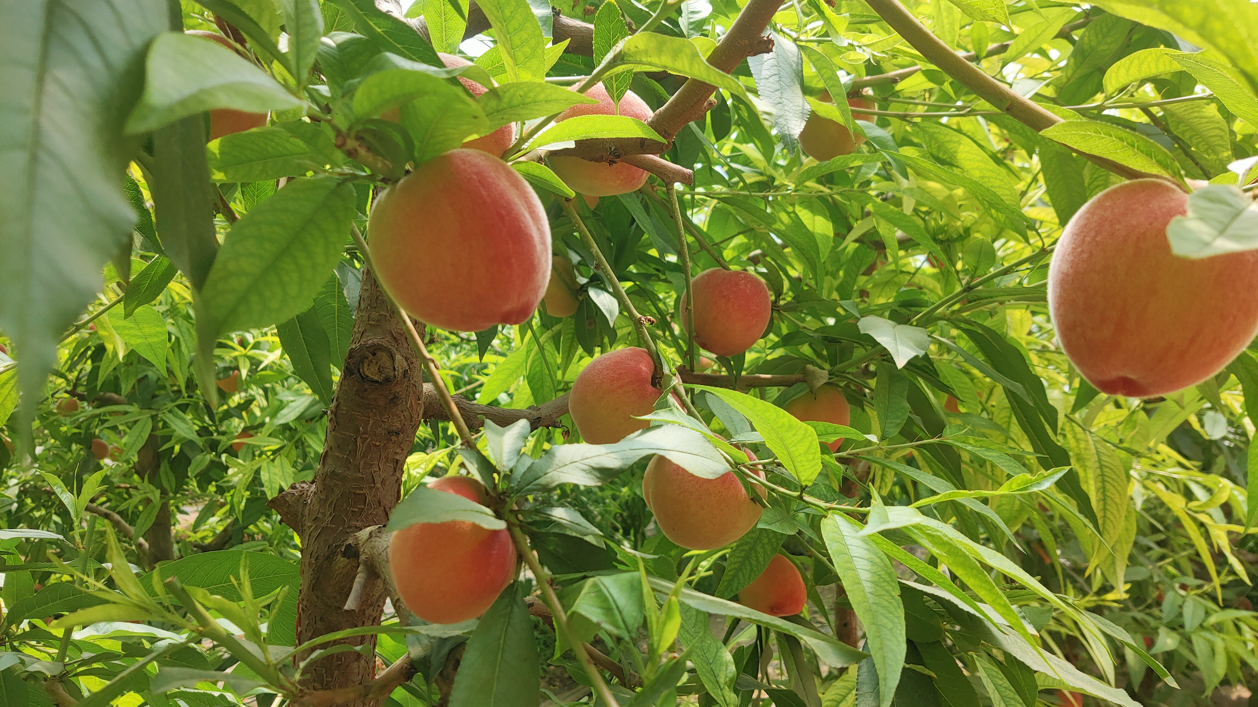 “家人们,甜水河的沙漠鲜桃真是个大、味美、多汁,吃上一口真是回味无穷!”