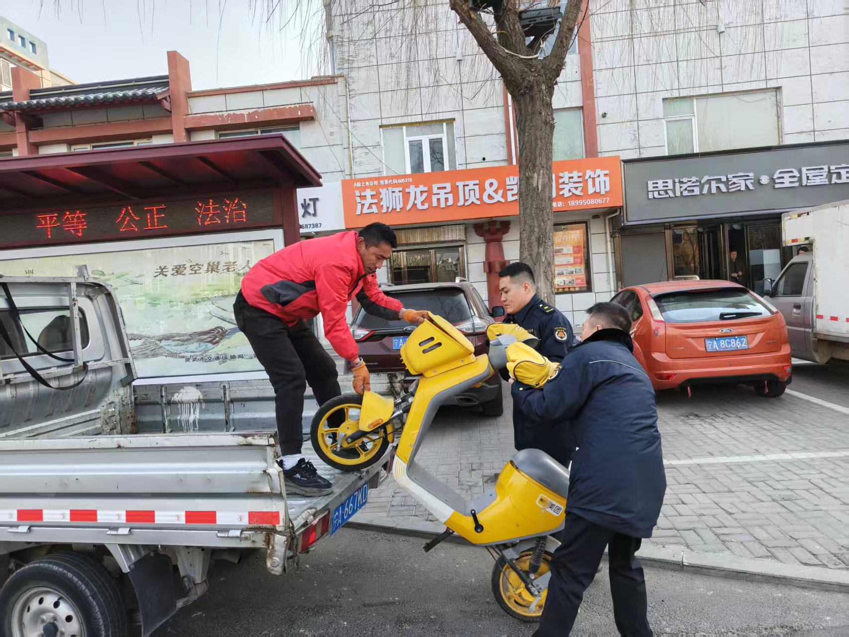 此次专项整治聚焦问题根源,多措并举提升治理实效。执法人员以商圈枢纽、学校医院周边、主次干道、公交站点等重点区域为突破口,采取“定点清查+动态巡查”相结合的方式,开展全方位排查整治。严格依据相关法律法规,对无牌照车辆、牌照破损影响识别的车辆、占用消防通道、盲道、机动车道及绿化带等违规区域乱停乱放的共享单车进行统一清拖。同时,要求共享单车运维公司限期整改,加强日常检修维护和重点区域运维调度,从源头减少违规车辆投放和乱停乱放现象。整治期间,累计清拖无牌照及牌照破损共享单车21辆,乱停乱放共享单车38辆。