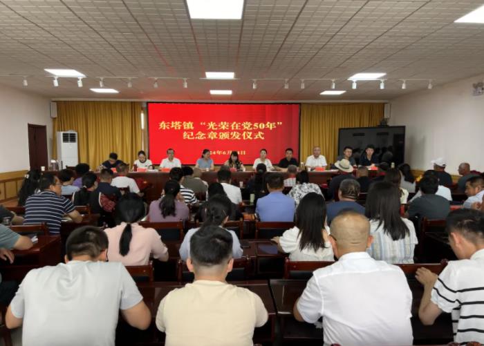 6月24日,东塔镇举行“光荣在党50年”纪念章颁发仪式,为2024年度党龄达到50年的老党员颁发纪念章,将关怀送到老党员心中,并向获得纪念章的老党员表示热烈祝贺和崇高敬意。