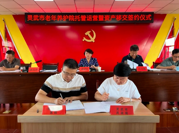 会上,市民政局与中医医院签订灵武市老年养护院托管运营协议、灵武市老年养护院资产移交协议。