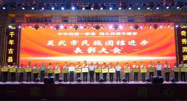 大会宣读了《中共灵武市委员会 灵武市人民政府关于表彰全市民族团结进步先进集体和先进个人的决定》。在颁奖环节,获得“灵武市民族团结进步先进集体”称号的代表和获得“灵武市民族团结进步先进个人”称号的代表上台领奖。他们都是身边的榜样,从在讲台上播撒团结种子的教师,到田间带领群众增收致富的农民;从打造“老邻居搭把手”帮帮团的社区,到建设“石榴籽手工坊”传承非遗的乡村,他们用实际行动生动诠释了“中华民族共同体”的深刻内涵,现场响起了热烈的掌声。