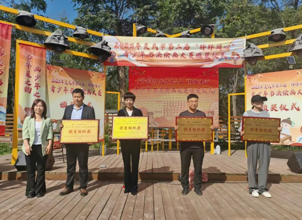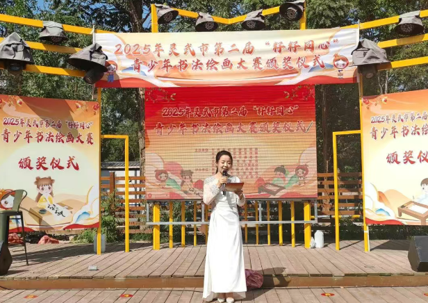 9月28日,由市委统战部、市委宣传部、团市委、市教育体育局联合主办的2025年灵武市第二届“籽籽同心”青少年书法绘画大赛颁奖仪式在东塔镇古枣溪园举行。