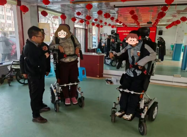“电动站立式轮椅很适合脊髓损伤的残疾朋友使用,当人站起来的时候,血液也有很好的循环,可以预防压疮,同时可以正常地面对面交流。”宁夏残疾人康复中心工作人员代晶说。