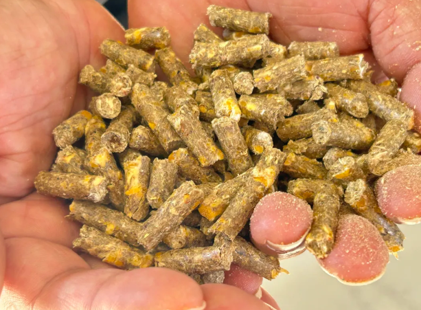 在完成羊舍雨污分离改造后,饲喂方式的更新进一步助力了养殖场的效益提升。以往玉米、草料单独搅拌饲喂,既浪费原料又导致羊只采食不均、生长不齐,今年养殖场新购入2台颗粒机,将玉米、豆粕等原料按科学比例加工成颗粒饲料,羊只自由采食后生长更均匀,肉质更细嫩。