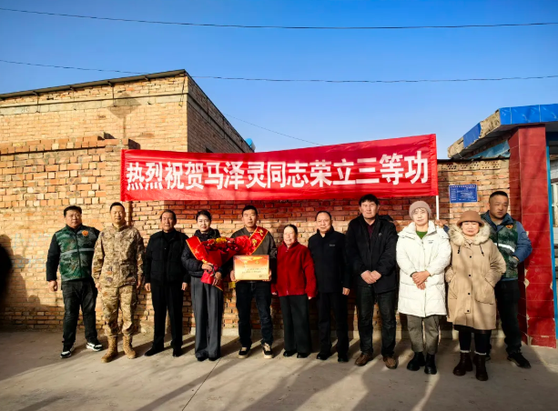 1月14日,市人武部、市退役军人事务局联合崇兴镇、城区街道、东塔镇组成的“送喜报”队伍,分赴辖区各地,为现役军人王苏龙、吴鹏、马泽灵、杜磊、杨继的家属送上三等功立功喜报,将党和政府的关怀与敬意送到军属心坎上。