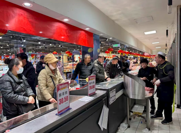 走进在新华百货开元店和辰坤购物中心生鲜市集,记者看到在入口处,市民主动登记信息,领取补贴证明。在商场内,平价商品专区标识醒目,米面油与牛奶陈列有序,在肉品销售区,市民们有序排队购买新鲜的牛羊肉,工作人员逐一核对信息、称重打包,现场秩序井然。