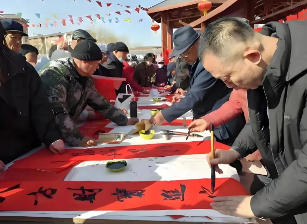 2月8日,梧桐树乡李家圈村村委会在村文化广场开展“迎新春·写对联”主题活动。书法老师们笔走龙蛇,将村民们的新春期盼与美好祝愿融入笔墨之间。“骏马奔腾开盛景,春风浩荡展宏图”“乡村焕彩民安乐,岁月流金福满堂”,一副副寓意吉祥、对仗工整的春联跃然纸上,涵盖了对马年顺遂、家庭和睦、乡村发展、五谷丰登的美好憧憬。此外,村“两委”还为行动不便的老人上门送上春联与新春祝福,让温暖覆盖到每一个家庭。