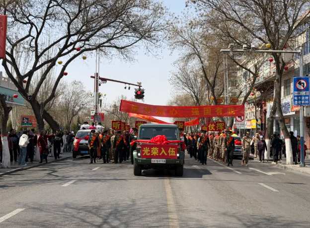当天,45名入伍新兵、10名退役老兵代表、7名立功军人家属沿着西平路开展了巡游活动。一路上锣鼓喧天,秧歌队伍盛情表演,道路两侧群众、新兵亲属纷纷驻足,现场气氛热烈。