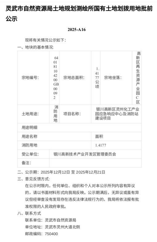 灵武市自然资源局土地规划测绘所国有土地划拨用地批前公示2025-A16