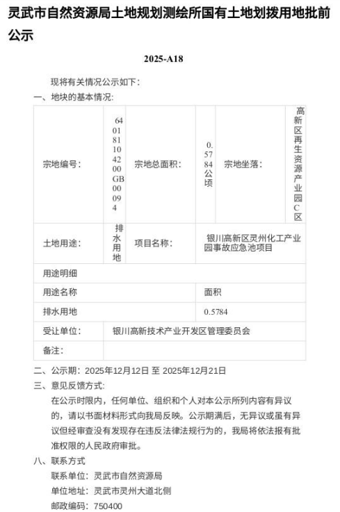灵武市自然资源局土地规划测绘所国有土地划拨用地批前公示2025-A18