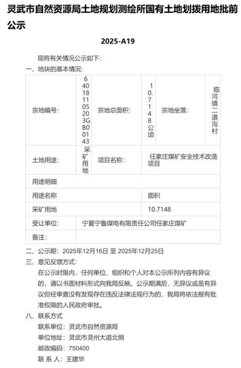 灵武市自然资源局土地规划测绘所国有土地划拨用地批前公示 2025-A19