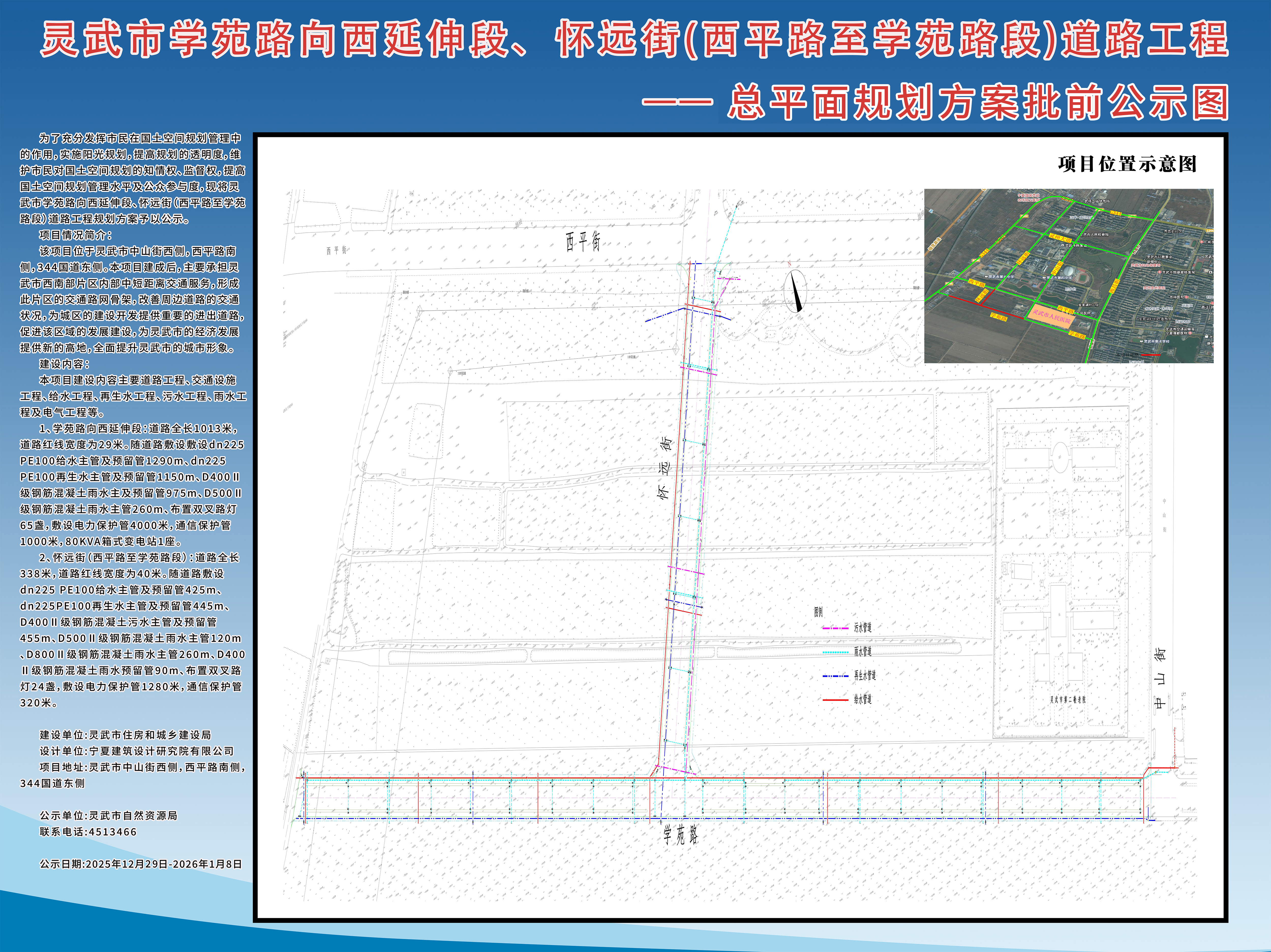 灵武市学苑路向西延伸段、怀远街(西平路至学苑路段)道路工程——总平面规划方案批前公示图