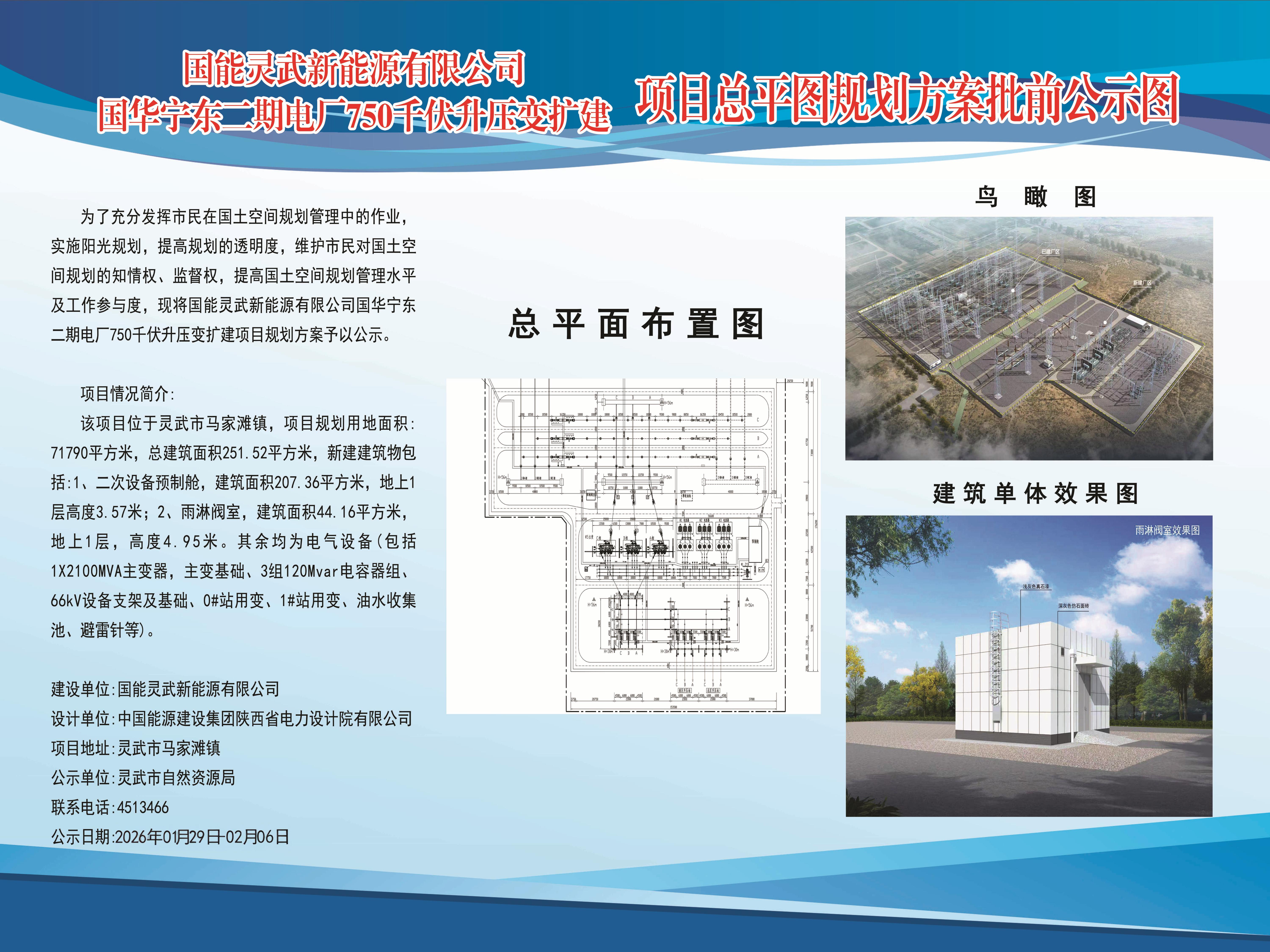 国能灵武新能源有限公司国华宁东二期电厂750千伏升压变扩建项目总平图规划方案批前公示图