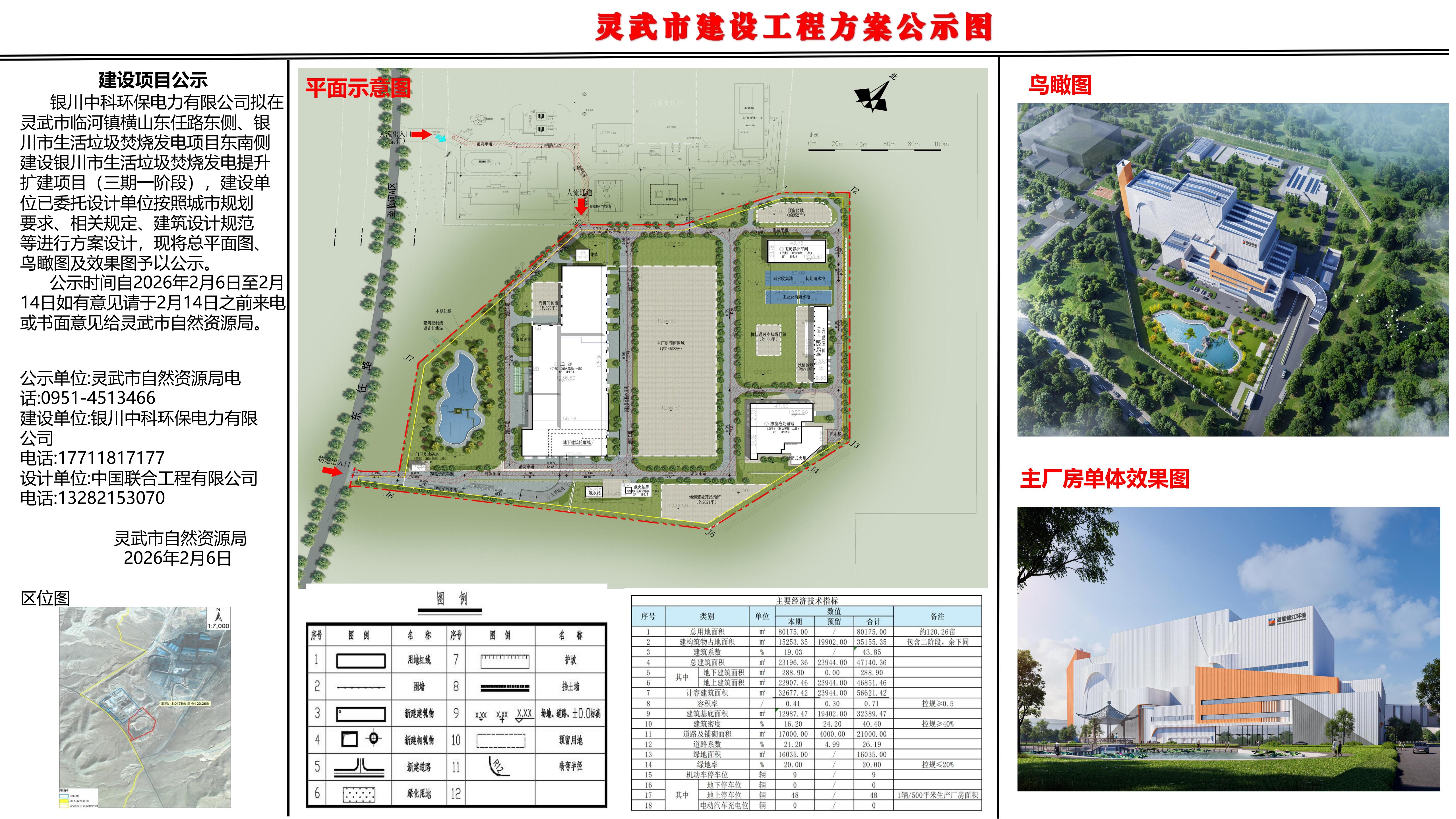 银川市生活垃圾焚烧发电提升扩建项目(三期一阶段)总平面规划方案批前公示图