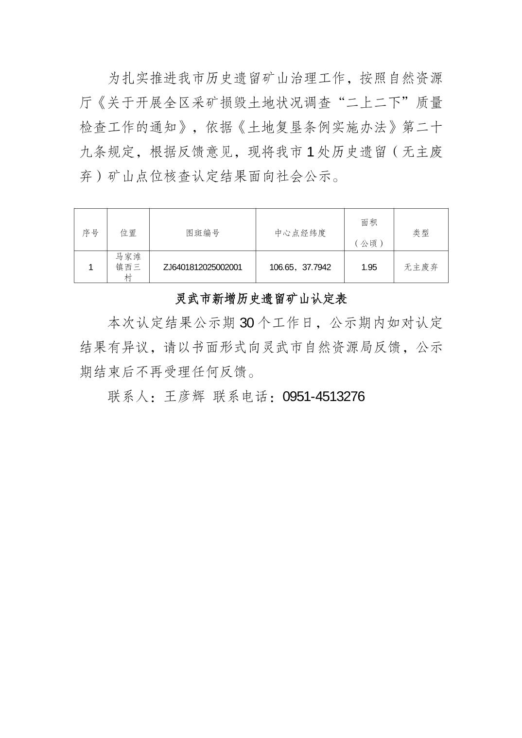 灵武市自然资源局关于新增历史遗留矿山认定结果的公示