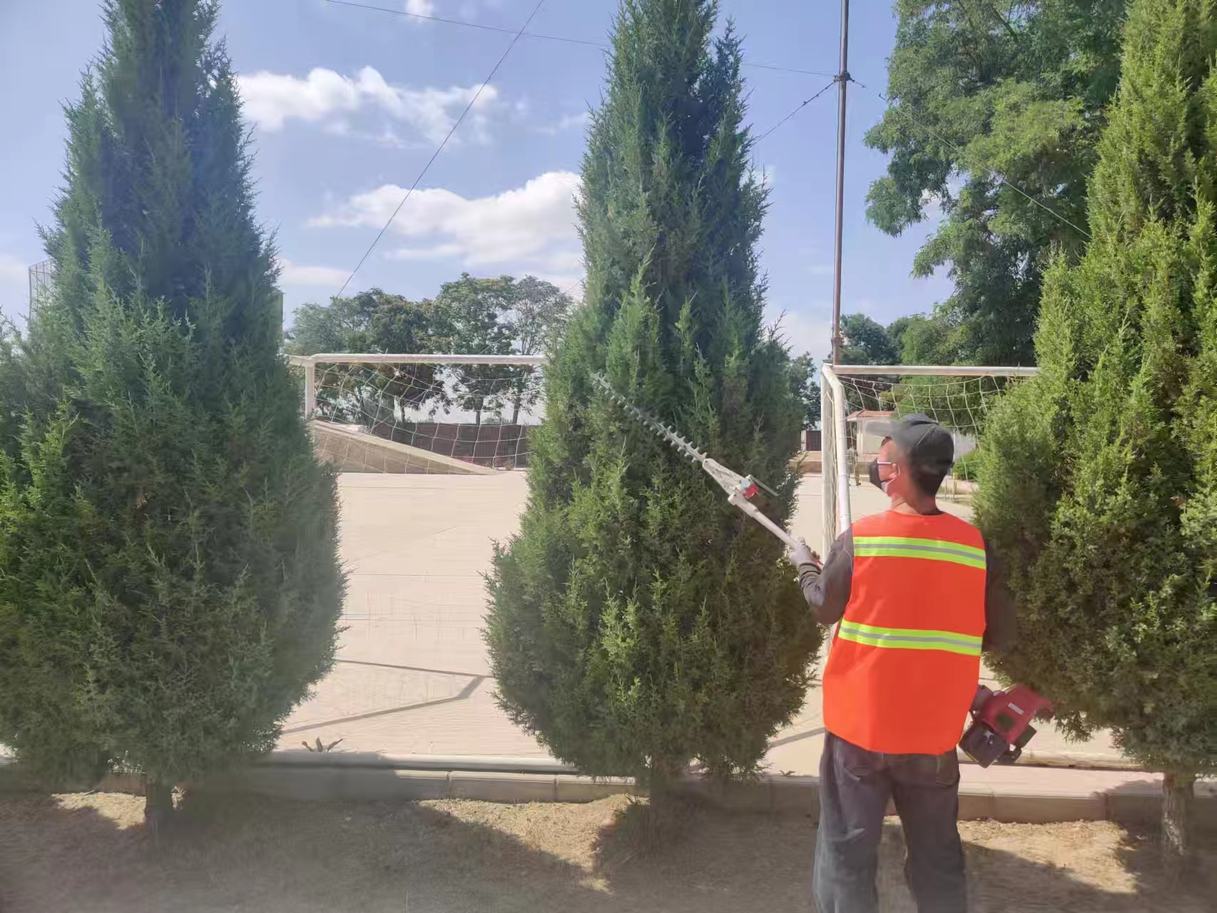 多年来,灵武市自然资源局与驻地某部队保持军民鱼水情,为该部队义务提供绿化修剪、病虫害防治等服务。入夏以来,部队营区内林木虫害呈扩散趋势,部分生长在高压线下的树木存在安全隐患,部队负责人与自然资源局联系后,6月16日,灵武市自然资源局城市园林管护中心、林木检疫站组织林业技术人员赶赴部队与部队官兵一起开展以“军民共建助力部队改善营区绿化环境”为主题的活动,对部队营区的树木进行病虫害防治以及修剪工作。
