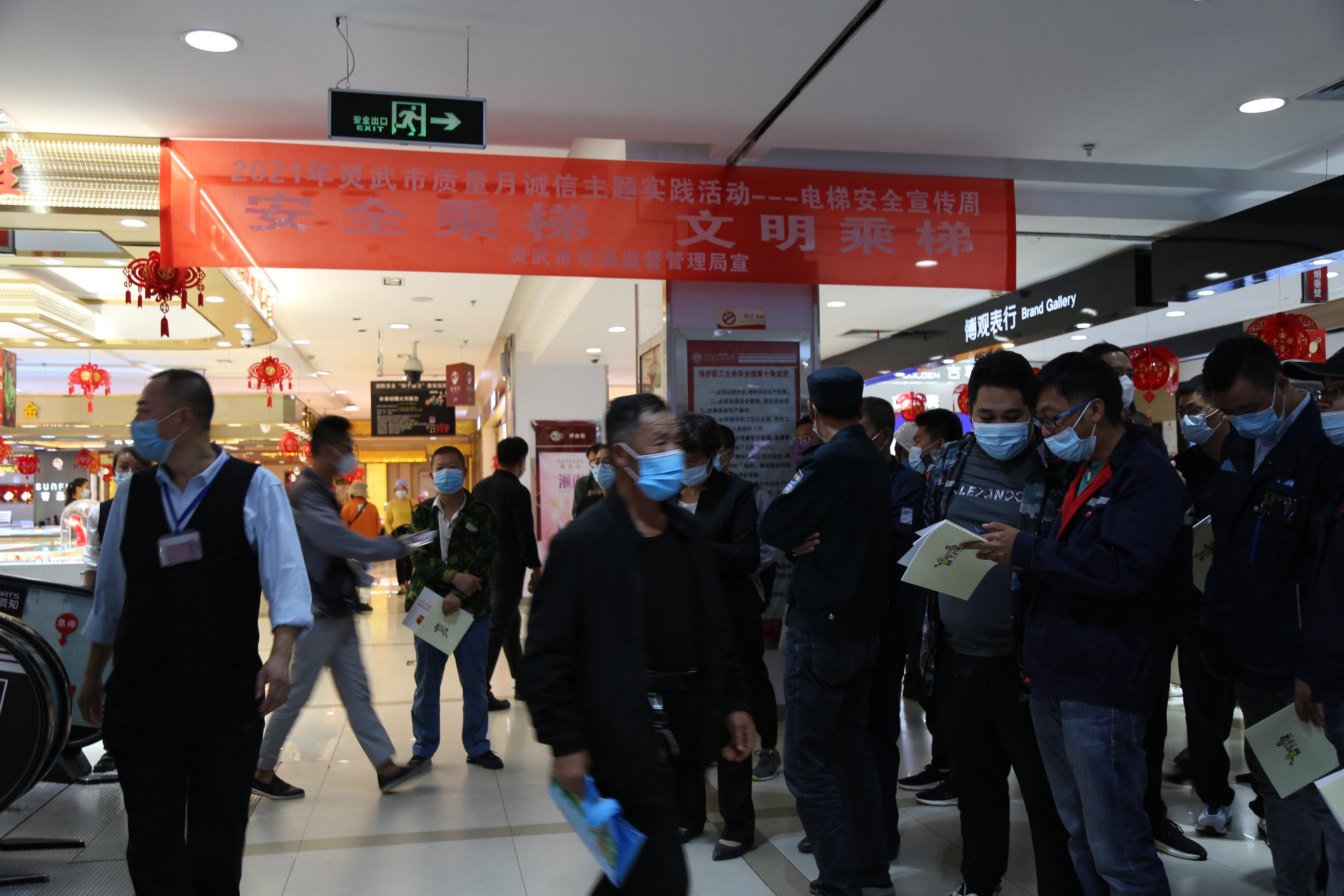 为扩大活动宣传面,此次活动选在人流量较大的银川新华百货灵武开元店开展。现场通过悬挂横幅、发放宣传画册等形式,为前来咨询的居民群众宣传讲解电梯安全乘坐知识、安全乘梯规范以及注意事项等方面的知识,发放各类宣传材料200余份。同时在商场进出口循环播放安全乘梯宣传片及乘梯安全事故案例视频,使广大居民群众能够更加直观的感受到安全乘梯、文明乘梯的重要性。