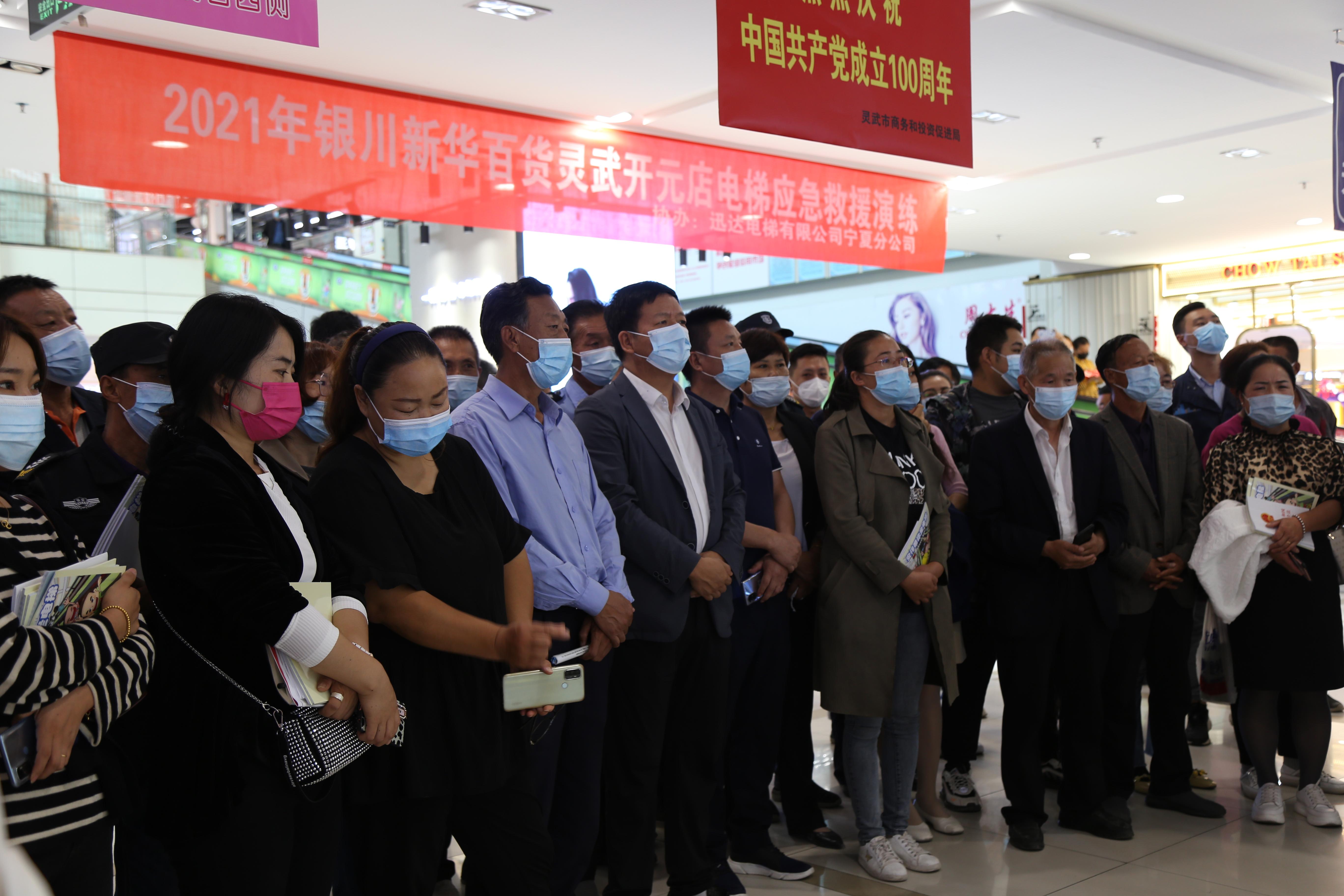 宣传活动结束后,迅达电梯有限公司宁夏分公司联合新华百货开元店开展了自动人行道伤人事故模拟应急救援演练观摩会。此次活动邀请到灵武市应急管理局局长、各物业公司及电梯维保公司负责人莅临观摩。现场模拟乘客在乘坐自动扶梯时摔倒、电梯出现故障后,商场工作人员及维保单位开展的一系列的紧急救援工作。演练结束后,我局监察人员与电梯使用单位、维保单位进行了沟通,对演练提出了意见建议,再次强调各单位要将电梯应急救援演练工作做好做实,加强日常安全管理,确保电梯运行安全。