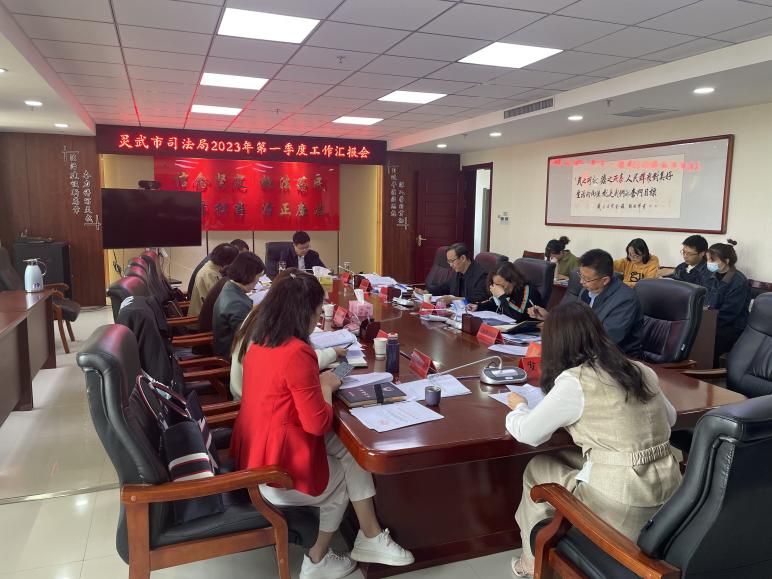 为全面总结2023年第一季度全市司法行政各项工作开展情况,分析存在问题,更好统一思想、铆足干劲,4月17日,灵武市司法局召开2023年第一季度工作汇报会。会议由局党组书记、局长黄志军主持,党组成员、各科室负责人、司法所所长参加。
