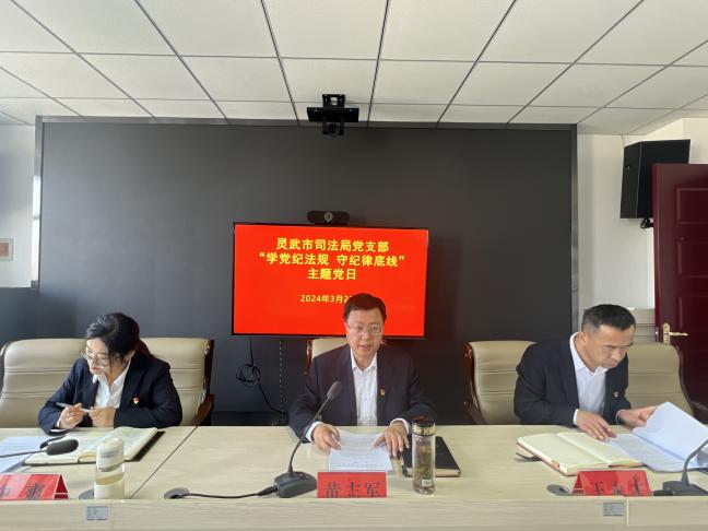 为深入学习贯彻习近平总书记关于党的自我革命的重要思想,坚定不移推进全面从严治党向纵深发展,不断增强党员干部遵规守纪的自觉性坚定性,营造风清气正的政治生态,3月25日,市司法局党支部开展了“学党纪法规 守纪律底线”主题党日。