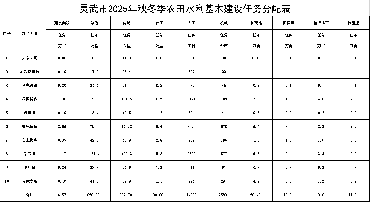附件:灵武市2025年秋冬季农田水利基本建设任务分配表