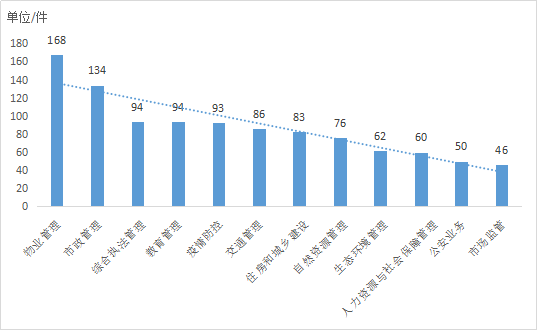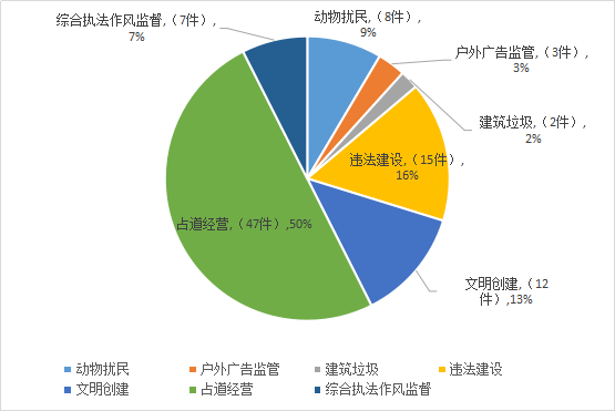 城市建设类447件:涉及的问题有住房建设管理、物业管理、市政管理、交通管理、综合执法管理、生态环境管理、市场监管、公安业务、自然资源管理等。